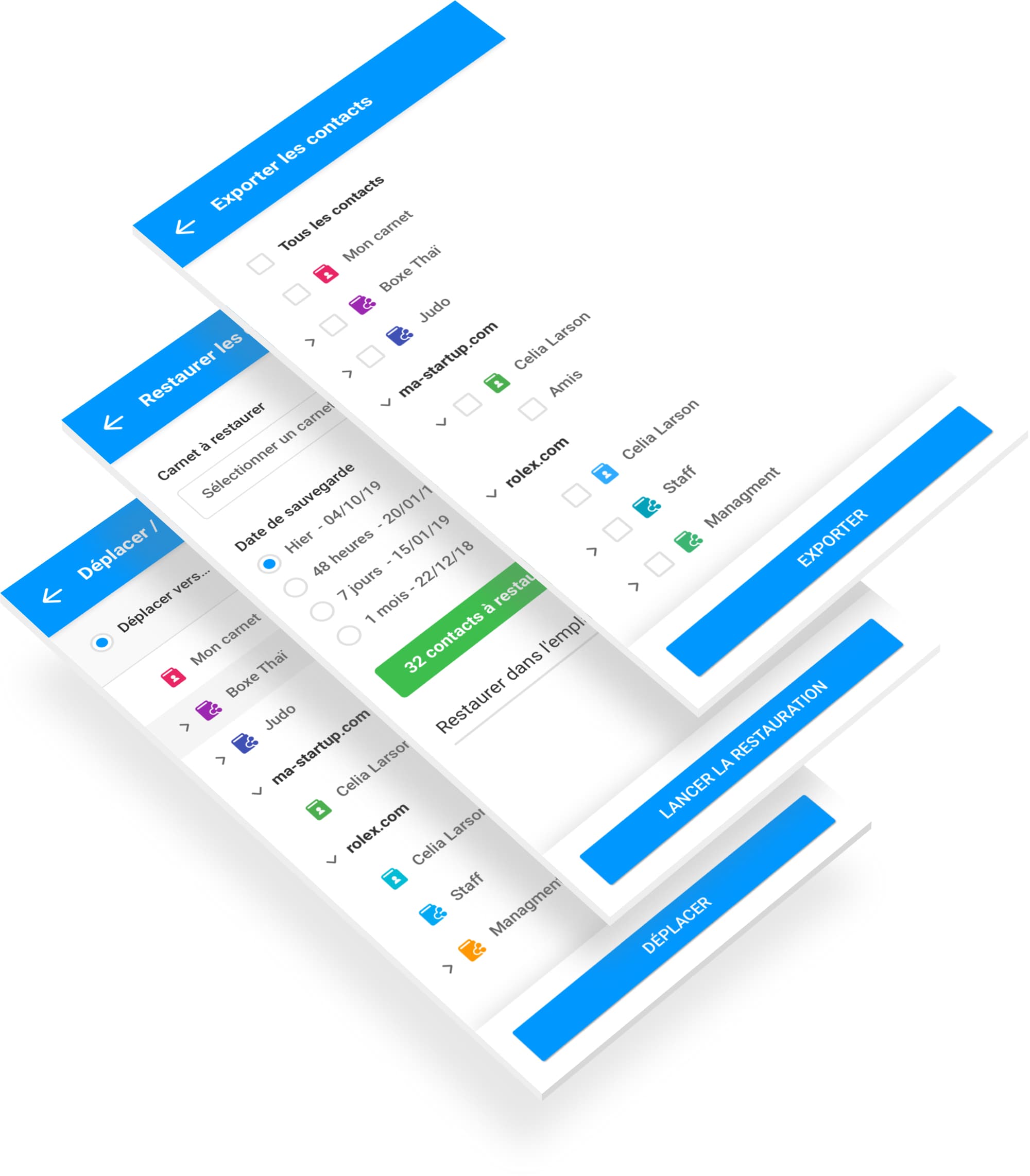 De nombreuses fonctionnalités ont été apportées ou améliorées. L’import et l’export ont été simplifiés. Il est désormais possible de déplacer des contacts sur mobile et de les restaurer pendant 1 mois en cas d’erreur de suppression.